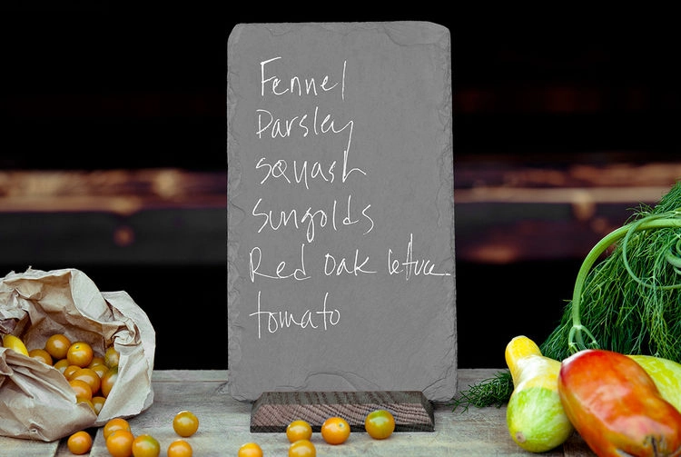 Our menu board and stand is ideal for identifying your dinner menu, evening cocktails, or goods brought to market. Includes 7" x 12" board, sturdy wood stand, and non-toxic chalk marker.